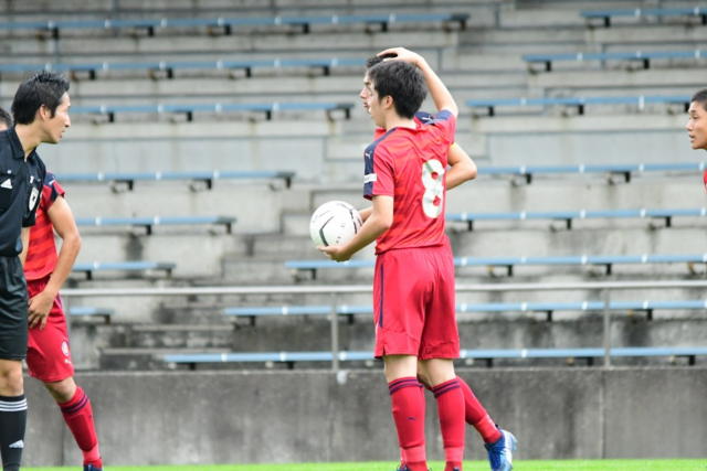 得点には結びつかなかったが、左サイド児玉からのクロスにドンピシャのタイミングで弓場のヘッド。